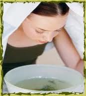 Siapkan satu baskom air panas (air mendidih yang didiamkan selama 1-3 menit) lalu bubuhkan 3-4 tetes peppermint oil. Selanjutnya hadapkan wajah Anda ke baskom sambil kepala dikerudungkan dengan handuk agar uapnya terkonsentrasi, lalu hiruplah dalam-dalam uap yang keluar. Aroma peppermint akan melegakan pernapasan Anda. Lakukan selama 5-10 menit. Terapi inhalasi ini baik dilakukan oleh penderita flu, sinusitis, TBC atau bronchitis; namun TIDAK BOLEH bagi penderita asma karena aroma yang pekat ini bisa menimbulkan kejang pada otot-otot saluran pernapasan.